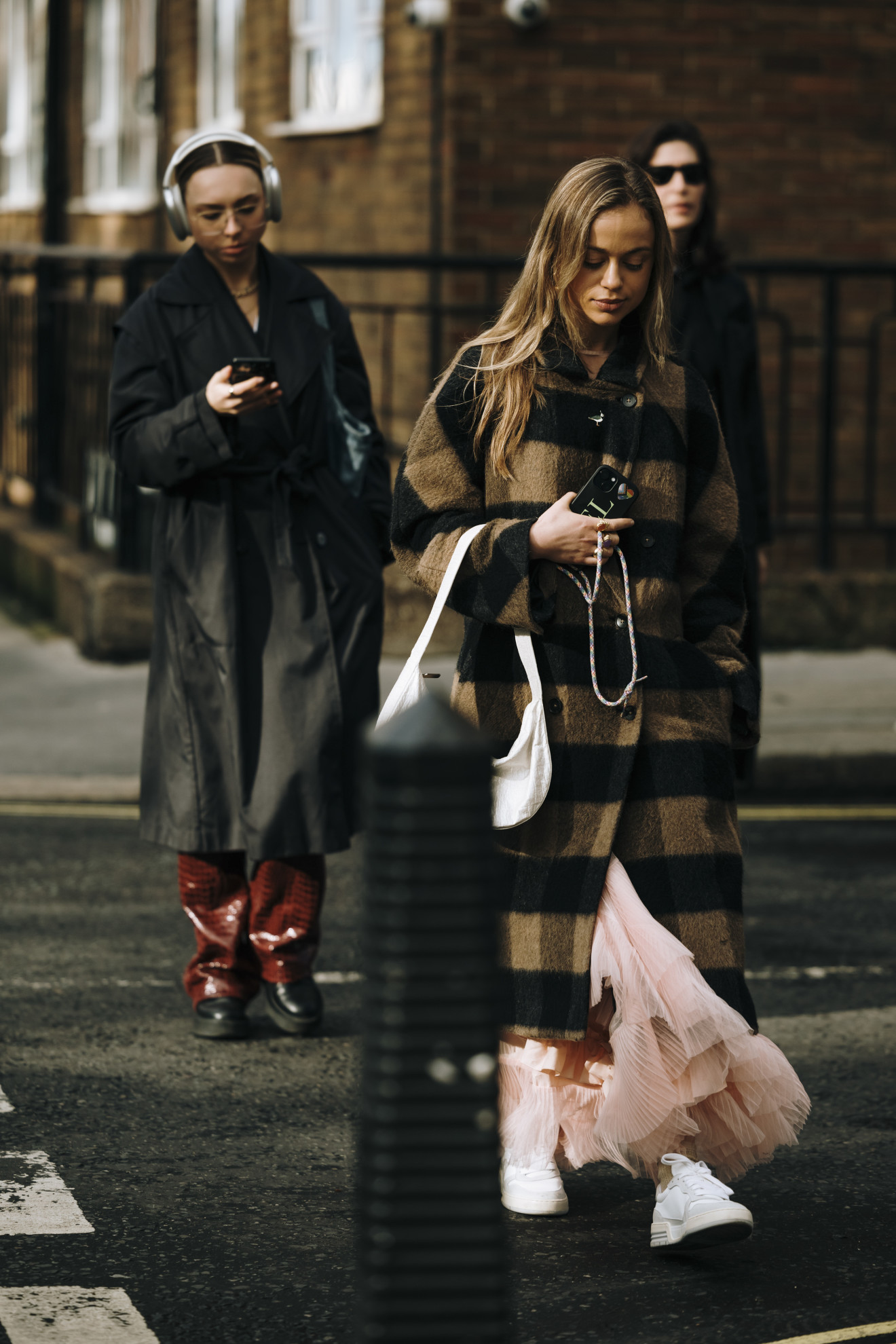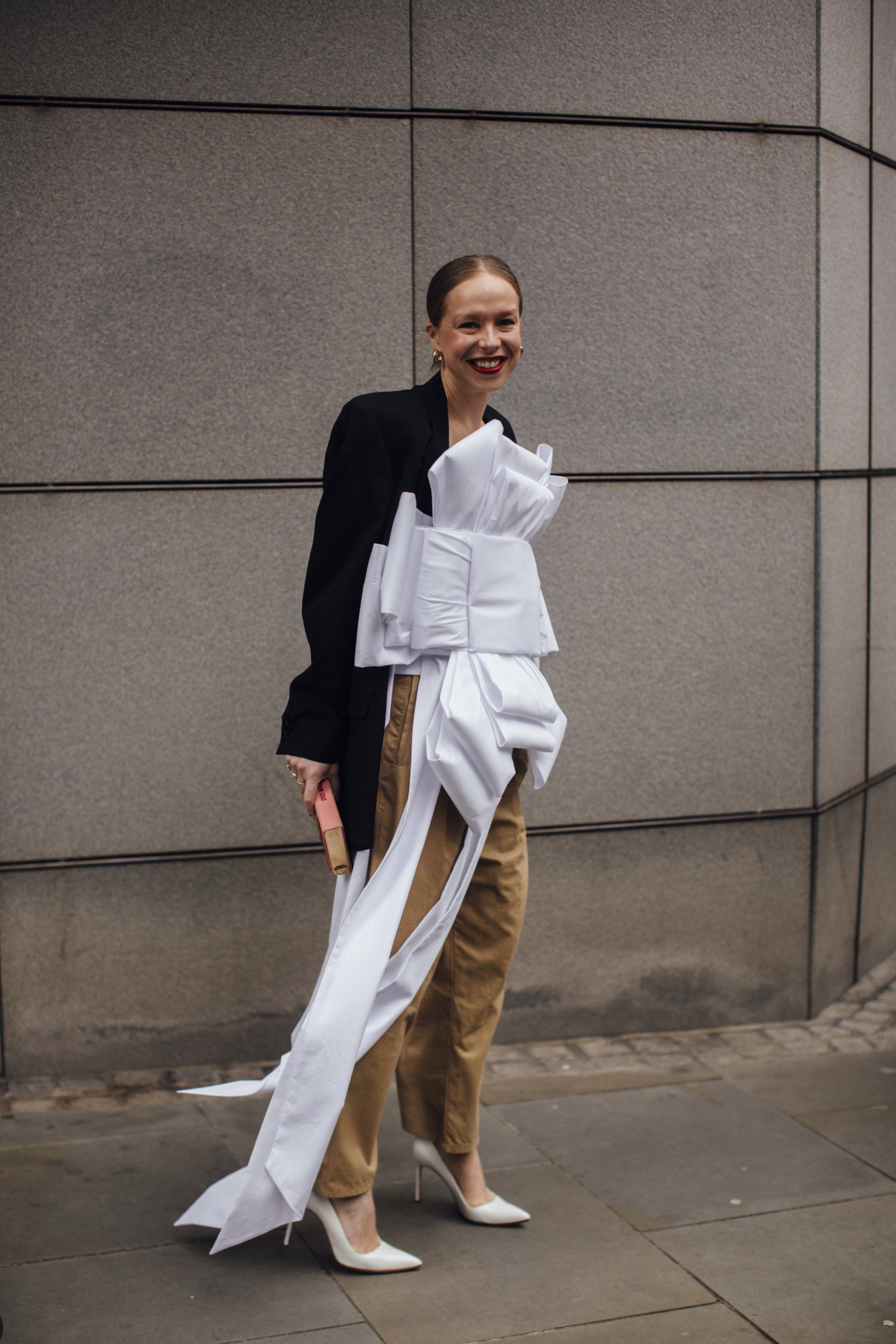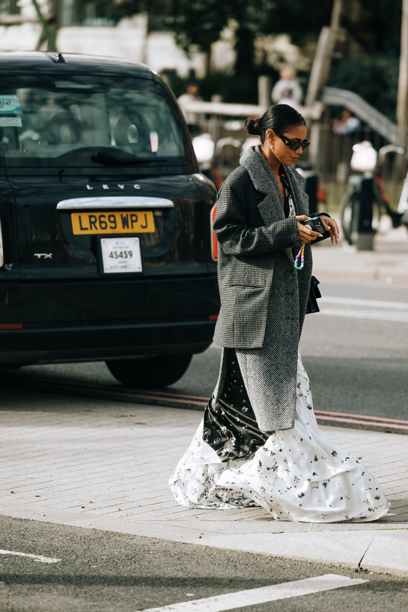 Χαλαρά κοστούμια σε συνδυασμό με πουά μεταξωτές μπλούζες με φιόγκους, κομψές καμπαρντίνες πάνω από φορέματα με βολάν, άνετα παντελόνια και παιχνιδιάρικα αξεσουάρ— είναι μόνο μερικές από τις κομψές λεπτομέρειες που εντοπίζονται έξω από τα σόου αυτή τη στιγμή. Οι Λονδρέζες γνωρίζουν πώς να κάνουν μια τάση δική τους και καθώς συνεχίζουν να προσφέρουν στυλιστική έμπνευση, εμείς κρατάμε σημειώσεις για τους εφευρετικούς τρόπους με τους οποίους συνδυάζουν διαφορετικές σιλουέτες.