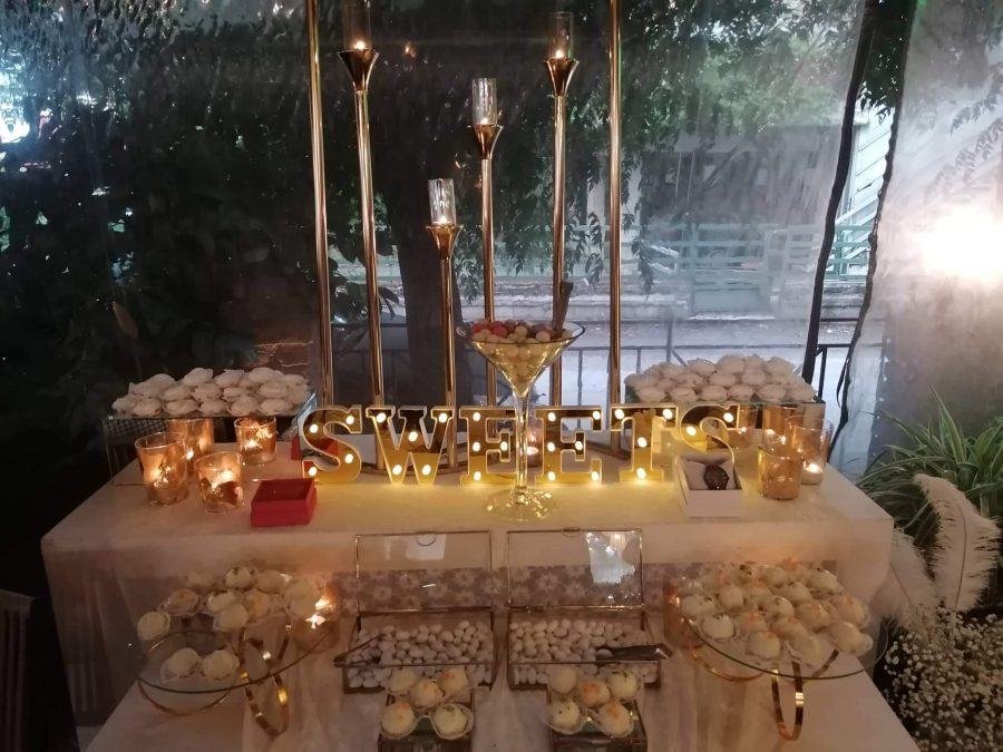 Το στολισμό του χώρου και το candy bar ανέλαβε το κατάστημα Bantel και η Μαρία Τσιρωνά. Ενώ το γαμήλιο τραπέζι δόθηκε στη Φωλιά του Κόκορα.