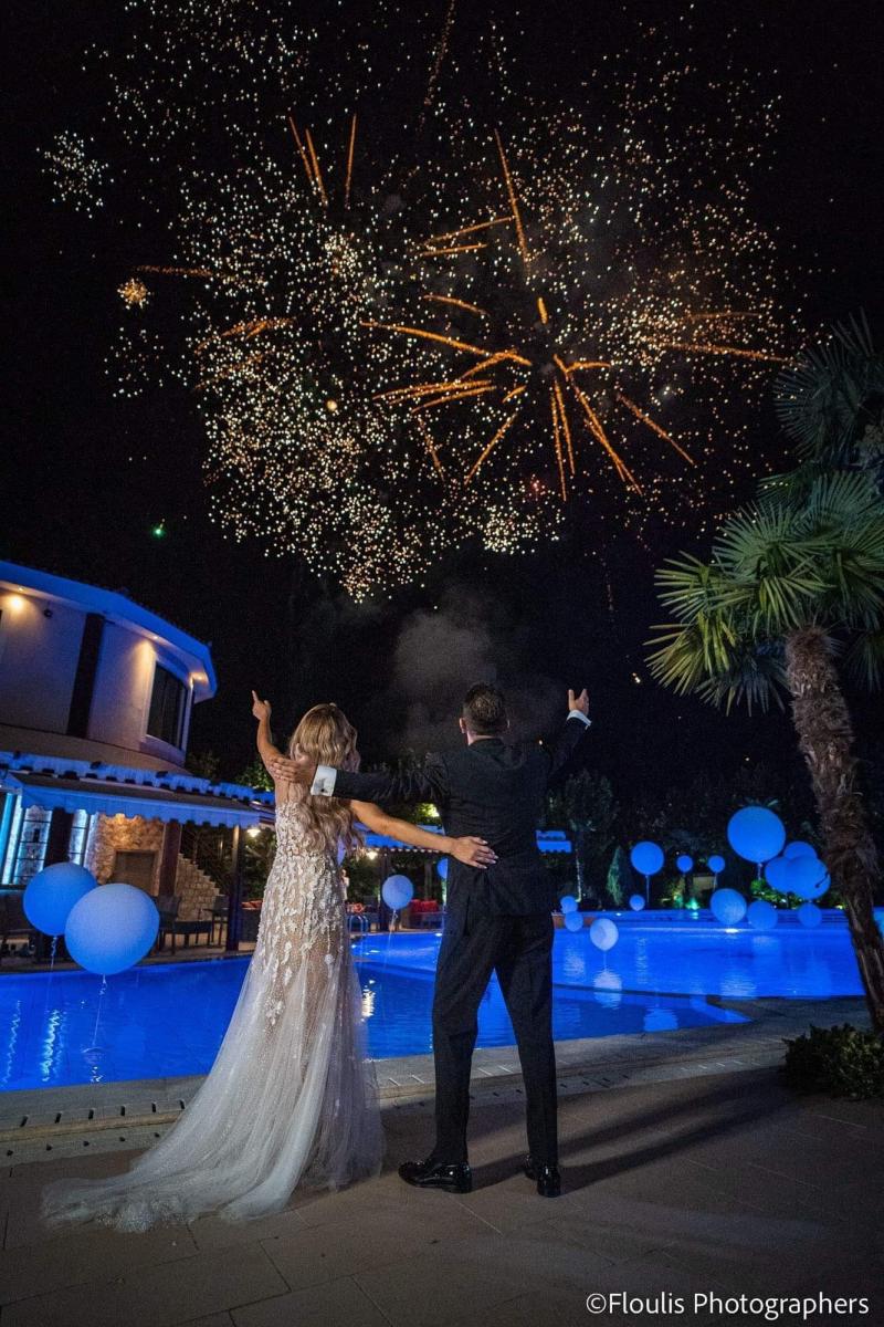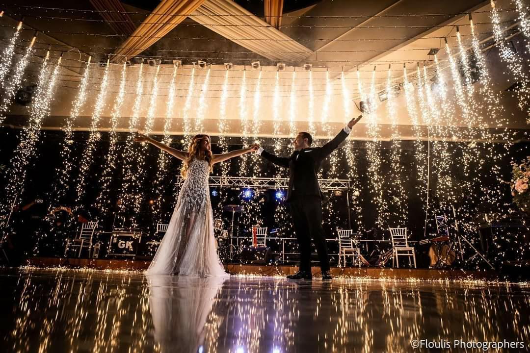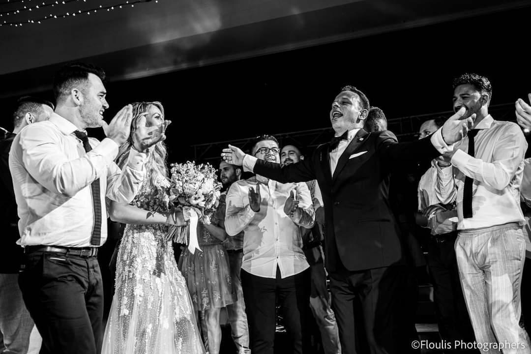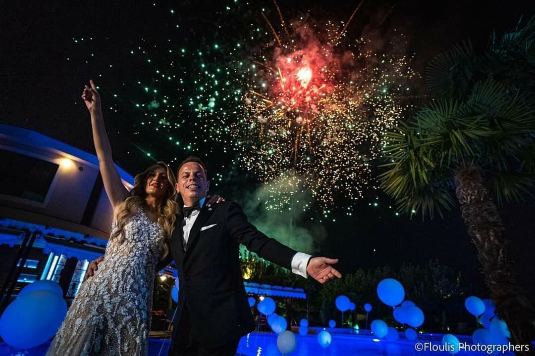 Το παραδοσιακό γαμήλιο γλέντι δόθηκε στο Ηρώδειο, υπό τους ήχους της ορχήστρας του Γιάννη Καψάλη με την Χαρά Βέρα. Στην άφιξη του ζευγαριού ο ουρανός φωτίστηκε από τα βεγγαλικά, και τον μοναδικό χορό τους.