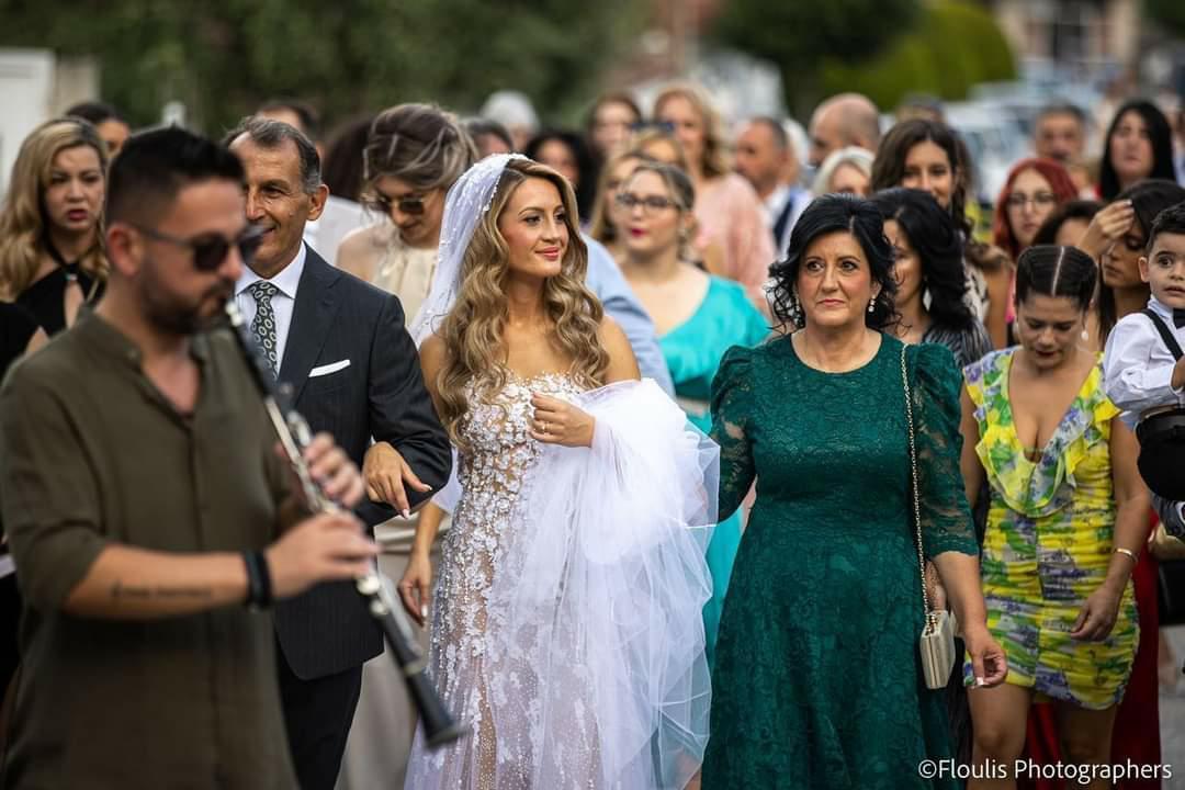 Η εντυπωσιακή Αποστολία έφτασε στην εκκλησία με ένα υπέροχο νυφικό Celia kritharioti με το παραδοσιακό κλαρίνο και την οικογένεια στο πλευρό της. Το νυφικό μακιγιάζ επιμελήθηκε η Ελένη Γιαταγάνα, hair styling Μαλλιά Eλένη Κόρδα,HND KORDA.