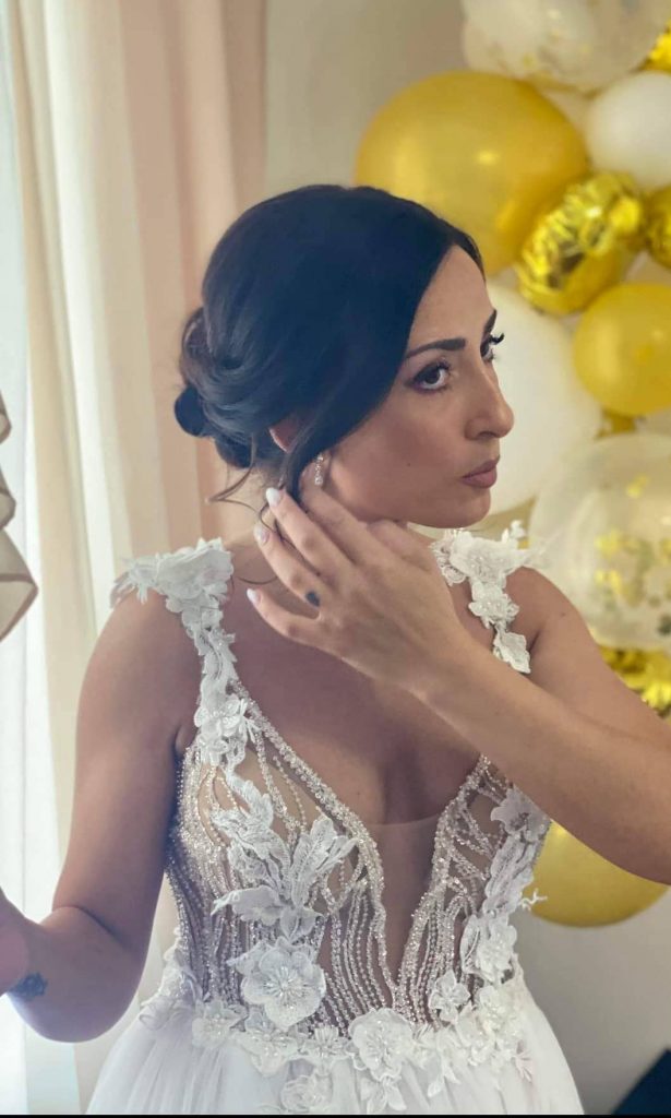 Το υπέροχο νυφικό της όμορφης Έλενας ! Μια δημιουργία της σχεδιάστριας Φρύνης Γιαννούλη που έπεσε γάντι στην καλλίγραμμή νύφη.
