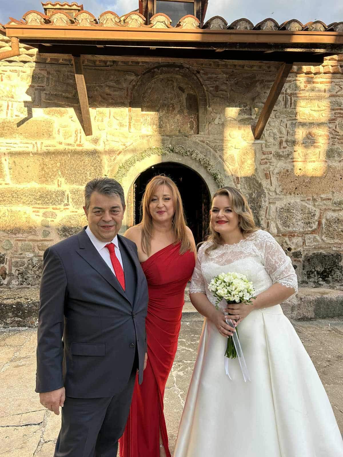 Το μυστήριο τελέστηκε στην πανέμορφη Ιερά Μονή Κοιμήσεως της Θεοτόκου στην Καλαμπάκα, παρουσία συγγενών και φίλων που ευχήθηκαν από καρδιάς στους νεόνυμφους «βίον ανθόσπαρτον».