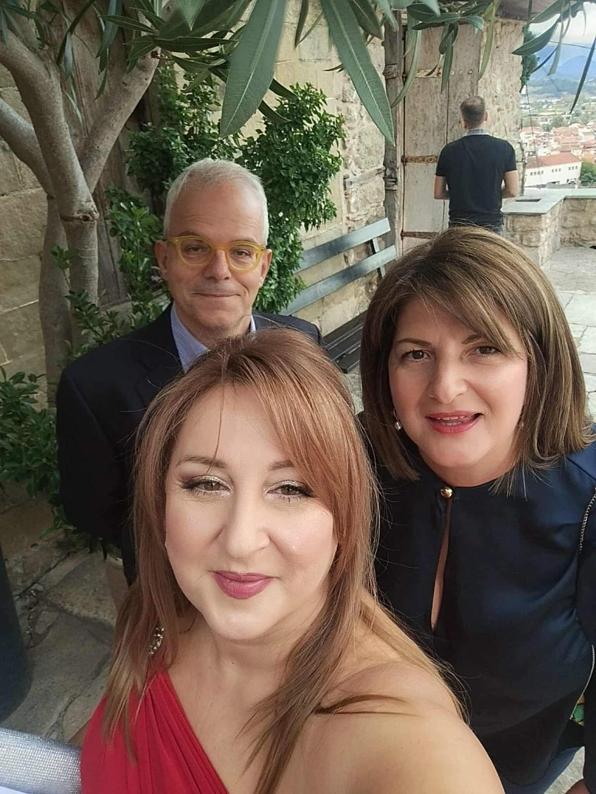Η κουμπάρα Μαρία Μακρή, επιστήθια φίλη του Στάθη και της Δήμητρας, με εντυπωσιακή παρουσία, στάθηκε στο πλευρό του ζευγαριού με χαρά και συγκίνηση, ευλογώντας αυτή τη νέα αρχή στη ζωή τους.