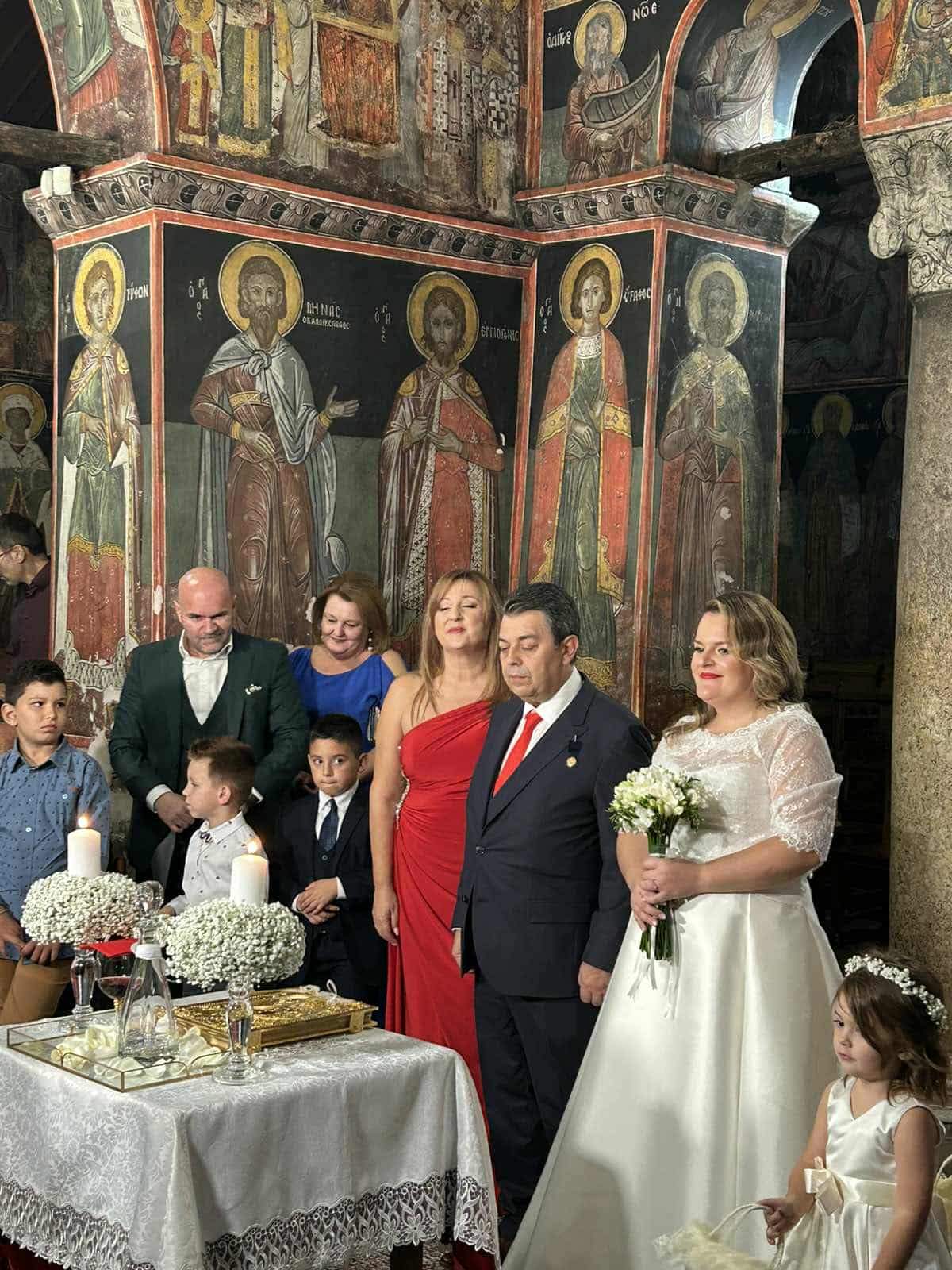 Το μυστήριο τελέστηκε στην πανέμορφη Ιερά Μονή Κοιμήσεως της Θεοτόκου στην Καλαμπάκα, παρουσία συγγενών και φίλων που ευχήθηκαν από καρδιάς στους νεόνυμφους «βίον ανθόσπαρτον».