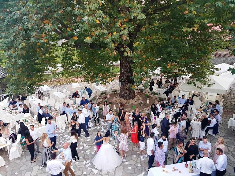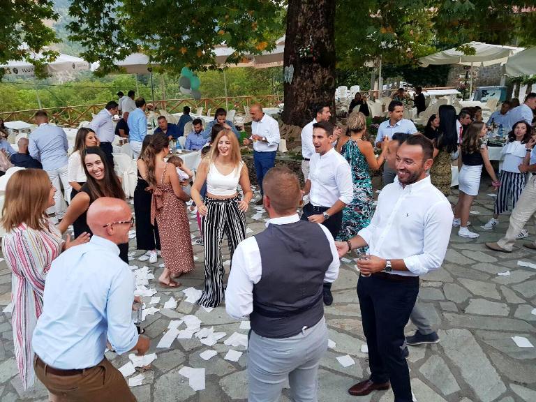 Λόγω της καταγωγής της νύφης από το ορεινό χωριό της Πίνδου και την αγάπη της για την περιοχή όπως και του γαμπρού, το ζευγάρι αποφάσισε να πραγματοποιήσει το γαμήλιο μυστήριο στο χωριό, κρατώντας ζωντανή την παράδοση με δημοτική ορχήστρα που το συνόδευσε από το σπίτι στην εκκλησία όσο και μετά στην πλατεία του χωριού όπου ακολούθησε ανοικτό γλέντι για όλους.Τόσο από την Λάρισα όσο και απο τα Τρίκαλα φίλοι του γνωστού ζευγαριού ανηφόρησαν για το γραφικό χωριό τιμώντας με την παρουσία τους την γαμήλια εκδήλωση
