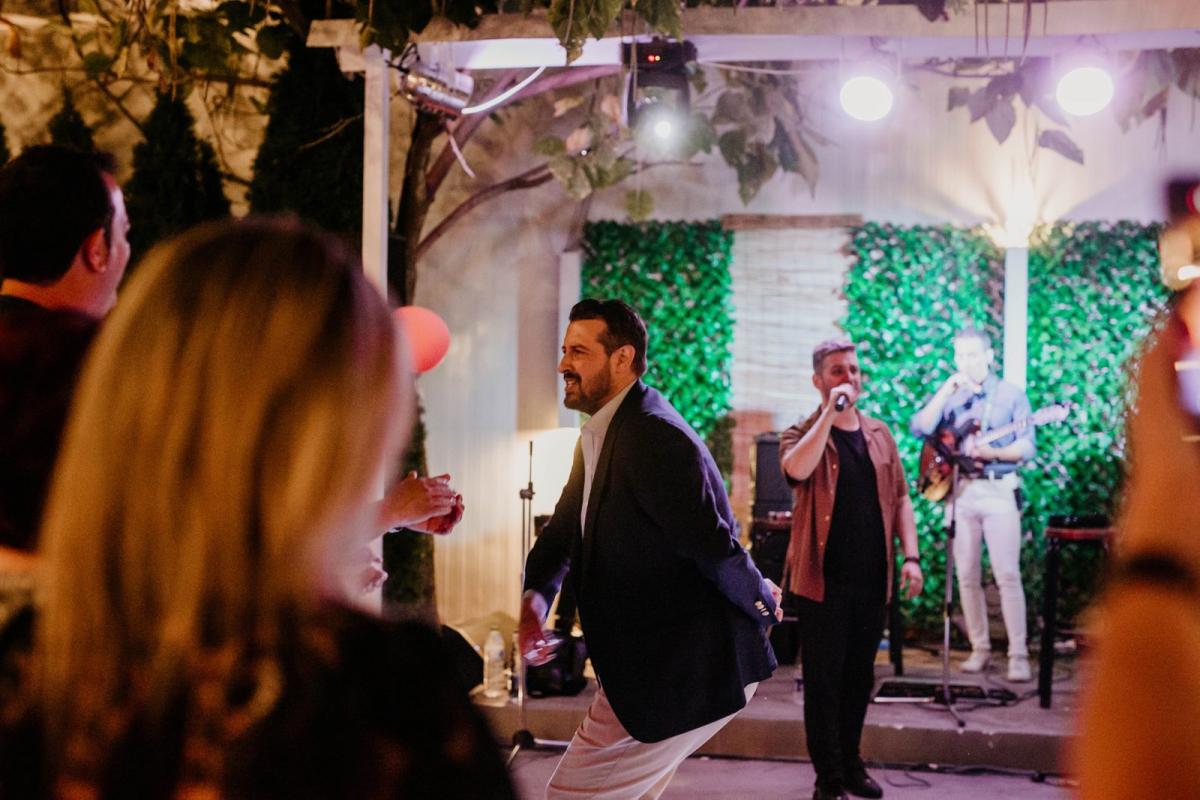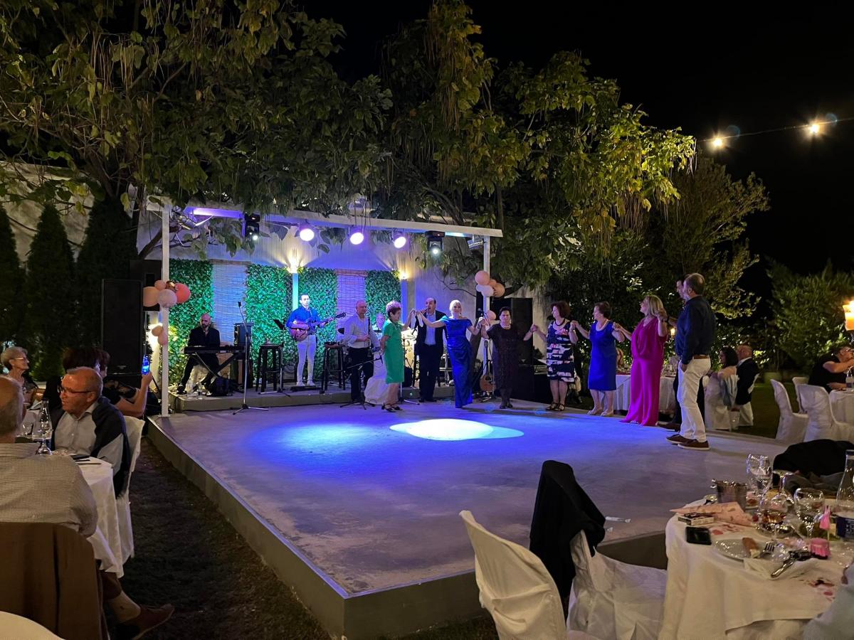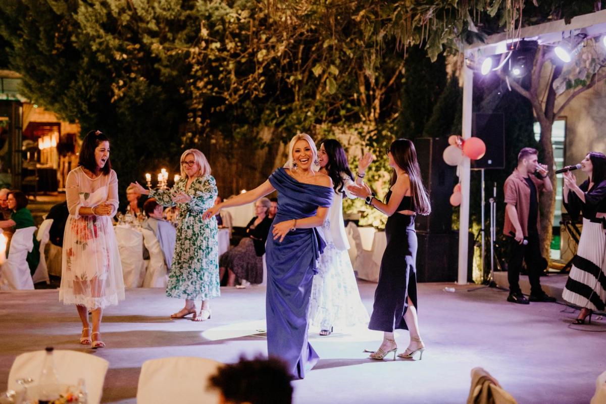 Η βραδιά κύλησε με πολύ τραγούδι και χορό με μια υπέροχη ορχήστρα και τη φωνή της Μαρίας Καλαμπόκα στο λαϊκό πρόγραμμα, ενώ στο δημοτικό τραγούδι έλαμψε με την παρουσία του ο επιστήθιος φίλος του ζευγαριού, επιχειρηματίας Γιώργος Γιαννίτσης.
