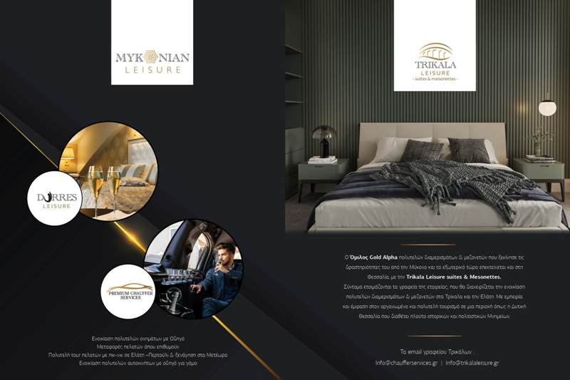O Όμιλος Gold Alpha πολυτελών διαμερισμάτων & μεζονετών που ξεκίνησε τις δραστηριότητες του από την Μύκονο και το εξωτερικό τώρα επεκτείνεται και στη Θεσσαλία, με την Trikala Leisure suites & Maisonettes.