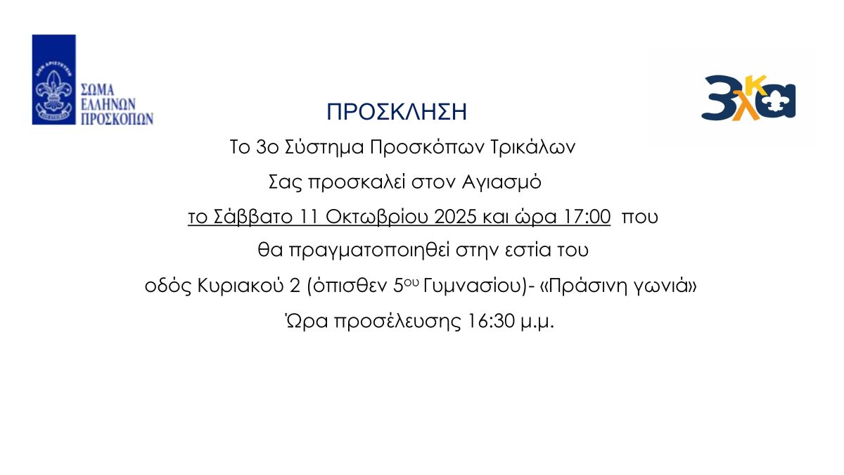 Τρίκαλα Αγιασμός για το 3ο Σύστημα Προσκόπων Τρικάλων – ΠΕ Κεν. & Δυτ. Θεσσαλίας Προσκοπικό Σύστημα 09/10/2025 Less than a minute Facebook X 09/10/2025 Less than a minute Facebook X Follow Us Share Facebook X Viber
