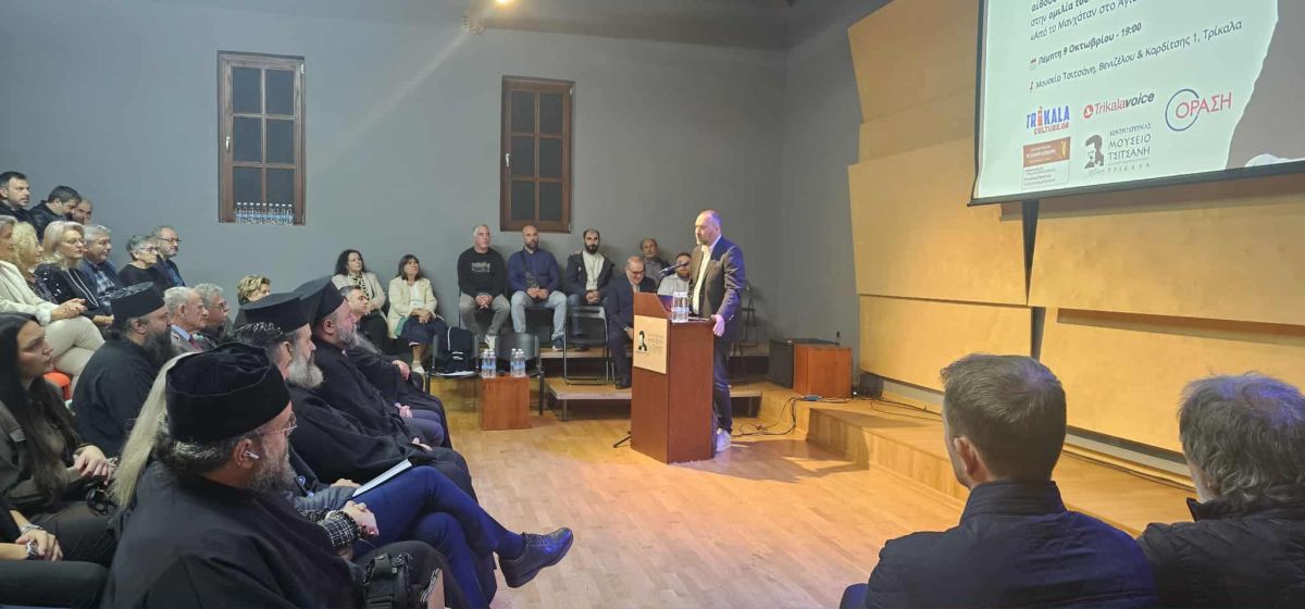 Μια συνάντηση με έναν συγγραφέα που ξέρει να μιλά για τις αντιθέσεις της σύγχρονης ζωής με τρόπο μοναδικό, περιγράφοντας μια διαδρομή γεμάτη εμπειρίες, αντιθέσεις και βαθιά νοήματα μέσα από εμπνευσμένες αφηγήσεις, χιούμορ και σοφία, είχε το πολυπληθές κοινό που βρέθηκε το απόγευμα της Πέμπτης στο Μουσείο Τσιτσάνη για την παρουσίαση του νέου βιβλίου του διακεκριμένου συγγραφέα και καθηγητή του Ινστιτούτου Διαρκούς Επιμόρφωσης ΓΕΕΘΑ, κ. Θοδωρή Σπηλιώτη «Από το Μανχάταν στο Άγιον Όρος» (εκδόσεις Κάκτος) που διοργάνωσαν οι ιστοσελίδες trikalaculture και trikalavoice με το βιβλιοπωλείο «Μαγικά Γράμματα».