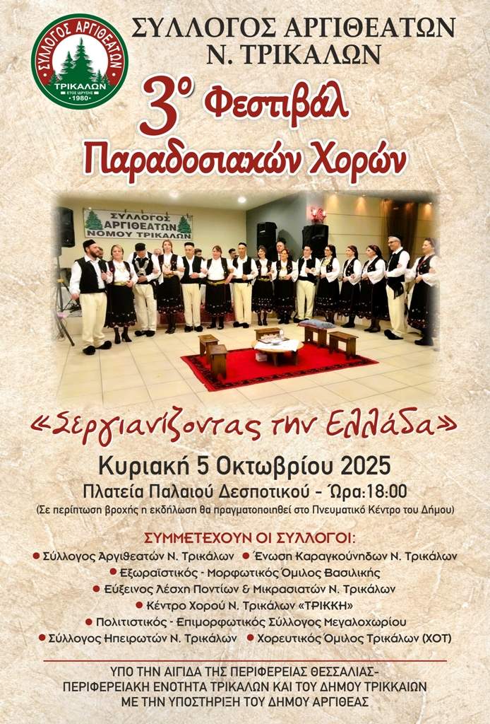 Αργιθέας. Σε περίπτωση βροχής η εκδήλωση θα πραγματοποιηθεί στο