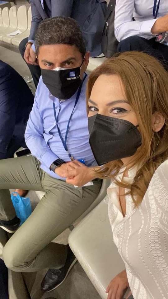Η βουλευτής Στέλλα Μπίζιου με τον  Υφυπουργό Πολιτισμού και Αθλητισμού κ. Λευτέρη Αυγενάκη παρακολουθώντας τον Αγώνα Βόλεϊ γυναικών ΕΛΛΑΔΑ- ΝΟΡΒΗΓΙΑ, στο Κλειστό Γυμναστήριο της Νεάπολης στη Λάρισα.