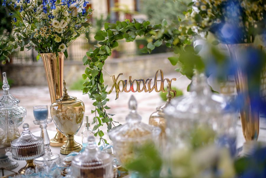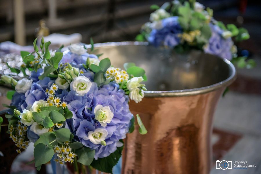 Ο νεοφώτιστος έλαβε το όνομα Χρύσανθος, τιμώντας τον παππού του Χρύσανθο Σταυρινού. Το μυστήριο τέλεσε ο Σεβασμιότατος Μητροπολίτης Γρεβενών κ. Δαβίδ, παρουσία του Σεβασμιοτάτου Μητροπολίτου Τρίκκης κ. Χρυσοστόμου, ενώ η κατήχηση έγινε από τον εφημέριο του ναού, πατέρα Λάμπρο Κολώνα. Νονός του νεοφώτιστου ήταν ο επιστήθιος φίλος του ζευγαριού, Γεώργιος Καρμανιόλας.