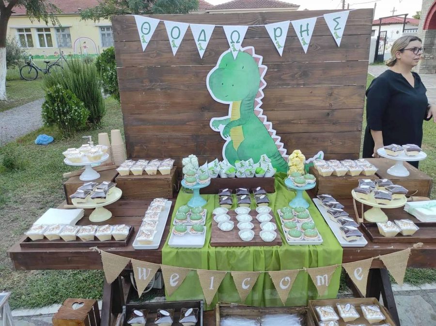 Για τους εκλεκτούς καλεσμένους ετοιμάστηκε ένα υπέροχο candy bar από το Σαν Παραμύθι, με θέμα τον κροκόδειλο.  Να σας ζήσει ο νεοφώτιστος!