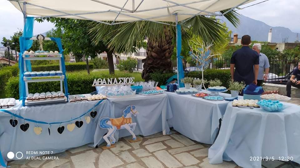 Το θέμα της βάπτισης ήταν τα άλογα φυσικά. Η ιταλική φινέτσα του λικέρ λιμοντσέλο, τα ζαχαρωτά που έφτασαν από Ιταλία για τους προσκεκλημένους της οικογένειας αλλά και απίστευτα χειροποίητα γλυκά που επιμελήθηκε η θεία του μικρού Αθανάσιου, Γωγώ Τασούλα, άφησαν την πιο γλυκιά εντύπωση.