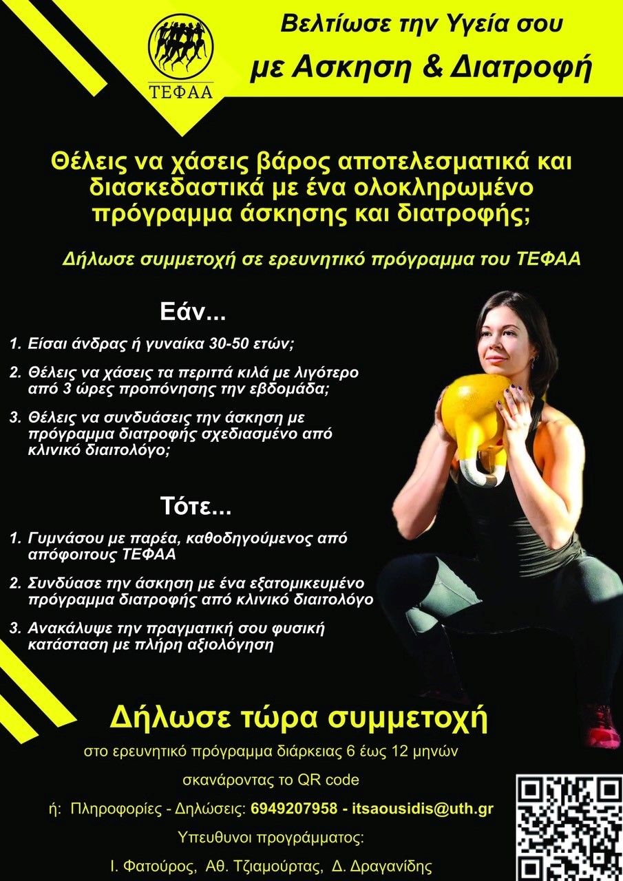 «Βελτίωσε την υγεία σου με Ασκηση και Διατροφή» από το ΤΕΦΑΑ Τρικάλων