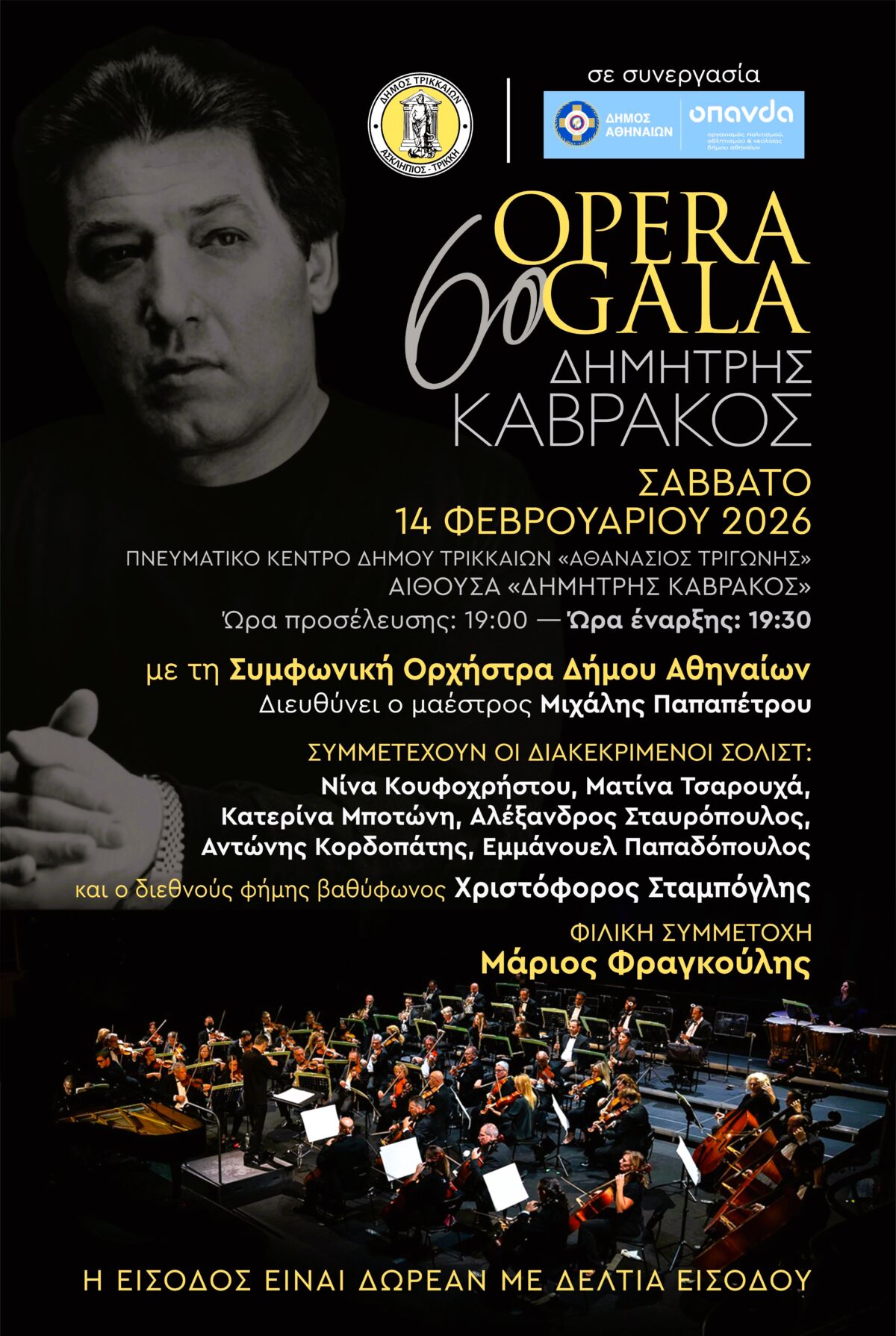 Tο 6 ο Opera Gala «Δημήτρης Καβράκος» διοργανώνεται από τον Δήμο Τρικκαίων σε