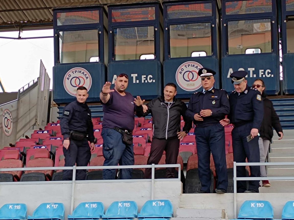 Ο Γιάννης Συμνεωνίδης ήταν τιμωρημένος και έτσι έβλεπε το παιχνίδι της ομάδας του απο το μπουθ με τις κάμερες. Κάποια στιγμή σχολίαζε μεγαλόφωνα τα όσα γινόταν στο γήπεδο, ένας φίλαθλος των Τρικάλων του ζήτησε τον λόγο και στην συνέχεια όλη η εξέδρα των επισήμων πήρε φωτιά!!!Οι Κώστας Παρδάλης και Μιχάλης Παναγιώτου ζήτησαν απο τον Συμεωνίδη να αποχωρήσει απο το γήπεδο, αυτό αρνήθηκε, ο κόσμος συγκετνρώθηκε κάτω απο το μπουθ και τον αποδοκίμαζε και στην συνέχεια κλήθηκε ισχυρή αστυνομική δύναμη για να απομακρύβει τον Συμεωνίδη!