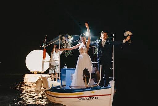 Έφτασαν στο χώρο της δεξίωσης στο κτήμα Delmare με ένα καικάκι και μουσική που ξεσήσωσε τους προσκεκλημένους.