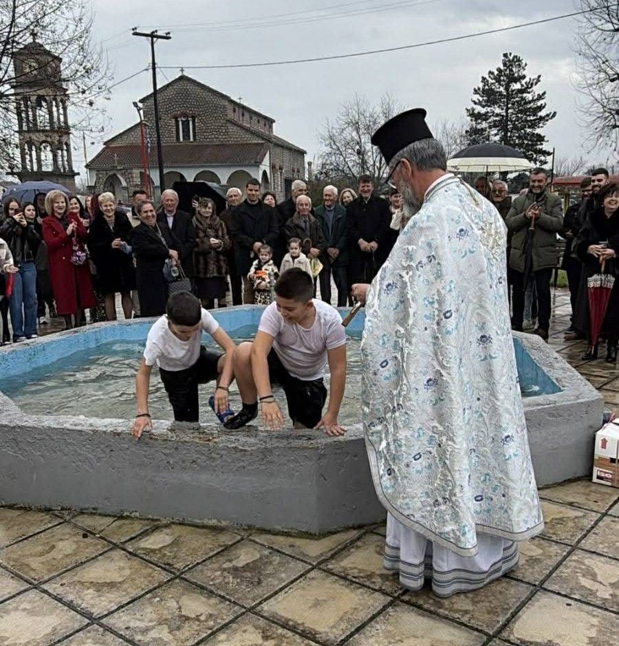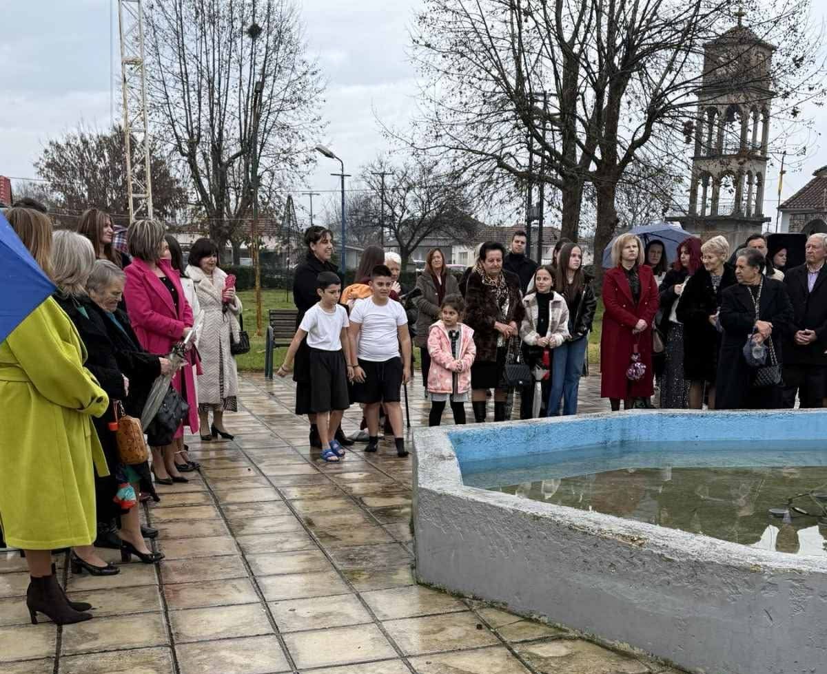 Στο επίκεντρο του εορτασμού βρέθηκε η πλατεία του χωριού, όπου, σύμφωνα με την παράδοση, τελέστηκε ο Αγιασμός των Υδάτων. Νεαροί μαθητές του σχολείου βούτηξαν στα παγωμένα νερά του συντριβανιού και έπιασαν τον Τίμιο Σταυρό, χαρίζοντας συγκίνηση και περηφάνια στους παρευρισκόμενους. Οι μικροί πρωταγωνιστές της ημέρας, Κωνσταντίνος Παππάς και Παΐσιος Μπάλας, απέσπασαν το θερμό χειροκρότημα όλων.