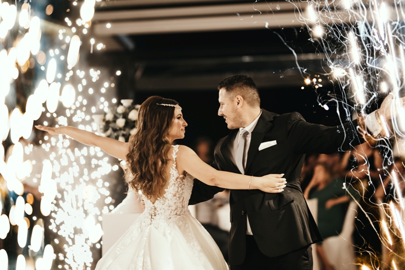 Μας άρεσε ιδιαίτερα η εντυπωσιακή είσοδος του ζευγαριού με πυροτεχνήματα στο κέντρο και ο ρομαντικός χορός που σφράγισε την γαμήλια βραδιά.Ευχόμαστε κάθε ευτυχία!