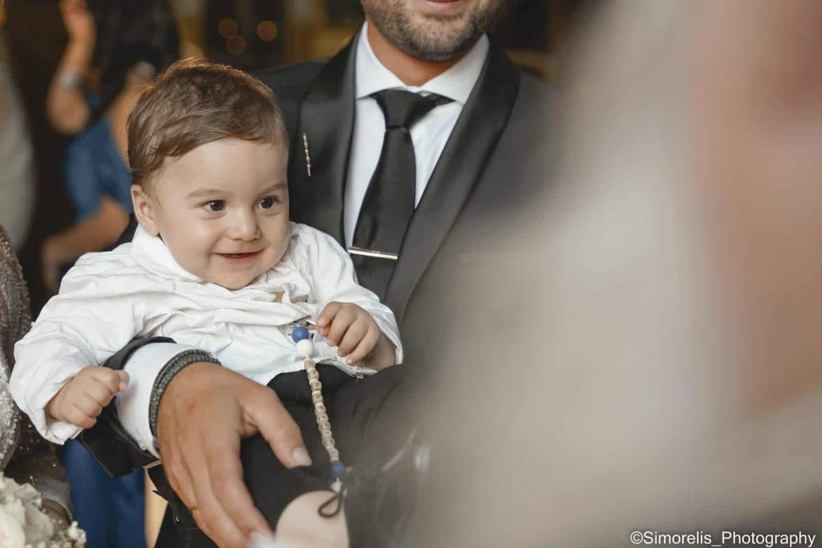 Το λαμπερό ζευγάρι δέχθηκε βροχή ευχών για αγάπη, ευτυχία και μακροζωία, ενώ ο μικρός Παναγιώτης πήρε όλη τη θετική ενέργεια και τις ευχές για υγεία και καλή τύχη στη ζωή του.