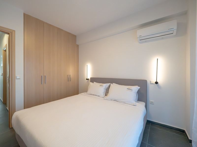 περιλαμβάνουν ένα king size κρεβάτι & ένα καναπέ κρεβάτι και είναι πλήρως εξοπλισμένα για μια άνετη διαμονή στο κέντρο των Τρικάλων.