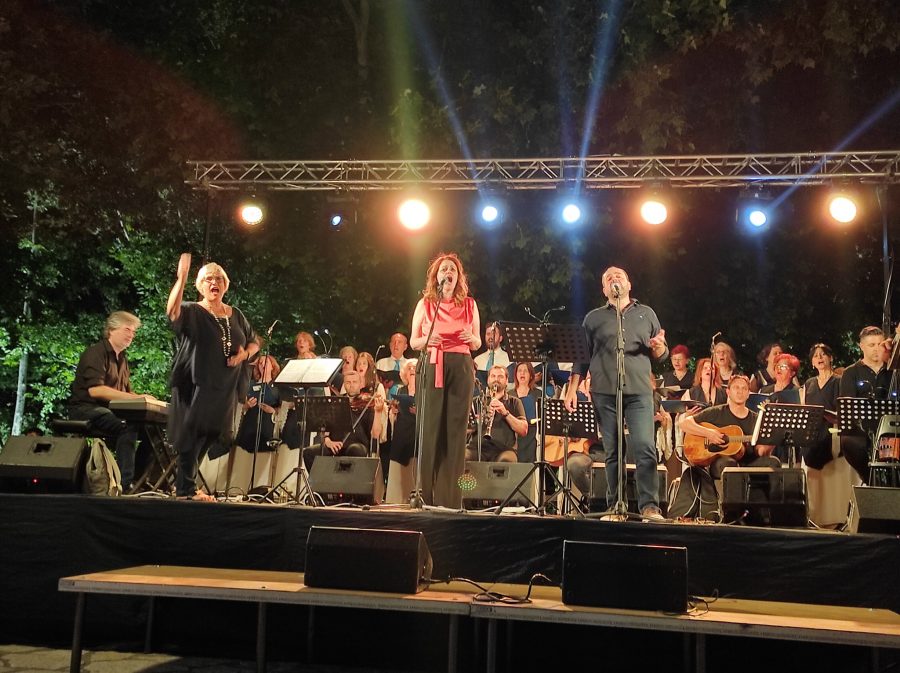 Η Ευτυχία Παπαγιαννούλη, ο Κώστας Οκκας, η Δημοτική Χορωδία Τρικάλων υπό τη διεύθυνση της μαέστρου Ελένης Ζιάκα και λαϊκή ορχήστρα από τρικαλινούς μουσικούς σε ενορχήστρωση Σάκη Κοντονικόλα,, απέδωσαν τις γνωστές, πάντα αγαπημένες και συνθέσεις του Μίκη Θεοδωράκη, με ή χωρίς πολιτικό χαρακτήρα.