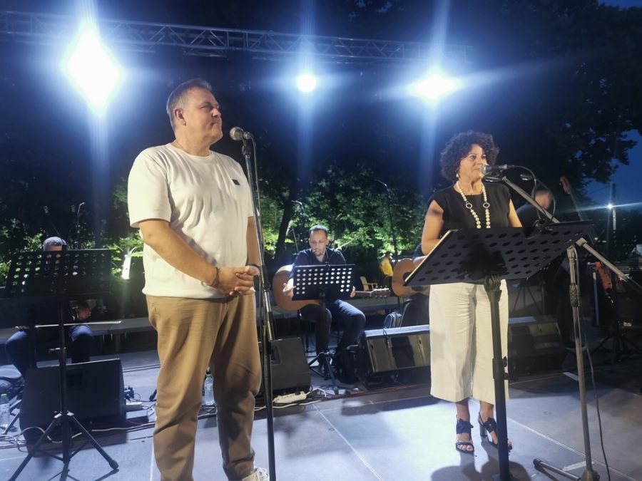 Η Ευτυχία Παπαγιαννούλη, ο Κώστας Οκκας, η Δημοτική Χορωδία Τρικάλων υπό τη διεύθυνση της μαέστρου Ελένης Ζιάκα και λαϊκή ορχήστρα από τρικαλινούς μουσικούς σε ενορχήστρωση Σάκη Κοντονικόλα,, απέδωσαν τις γνωστές, πάντα αγαπημένες και συνθέσεις του Μίκη Θεοδωράκη, με ή χωρίς πολιτικό χαρακτήρα.