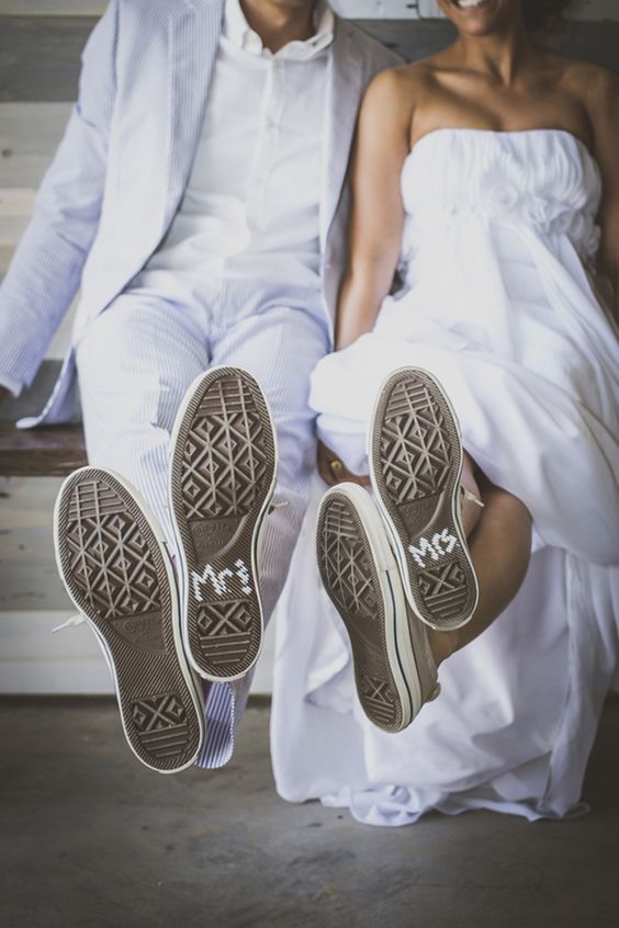 Τα παπούτσια All Star της εταιρίας Converse είναι πρώτα στην προτίμηση για τις εναλλακτικές νύφες. Λόγω της ποικιλίας των χρωμάτων τους, μπορούν να συνδυαστούν με τις χρωματικές λεπτομέρειες που έχετε επιλέξει για τη διακόσμηση.  Αλλιώς ένα λευκό ζευγάρι All star  διακοσμημένα με πέρλες, glitter και κορδέλες θα δώσει μια ξεχωριστή πινελιά στο στυλ σας.  Επειδή τα All Star είναι unisex μπορείτε να κάνετε ένα ιδιαίτερο στυλ μαζί με τον γαμπρό γιατί μπορείτε κάλλιστα να φορέσετε το ίδιο ζευγάρι παπούτσια, κάτι που σίγουρα στις φωτογραφίες θα έχει ένα πολύ ξεχωριστό αποτέλεσμα .
