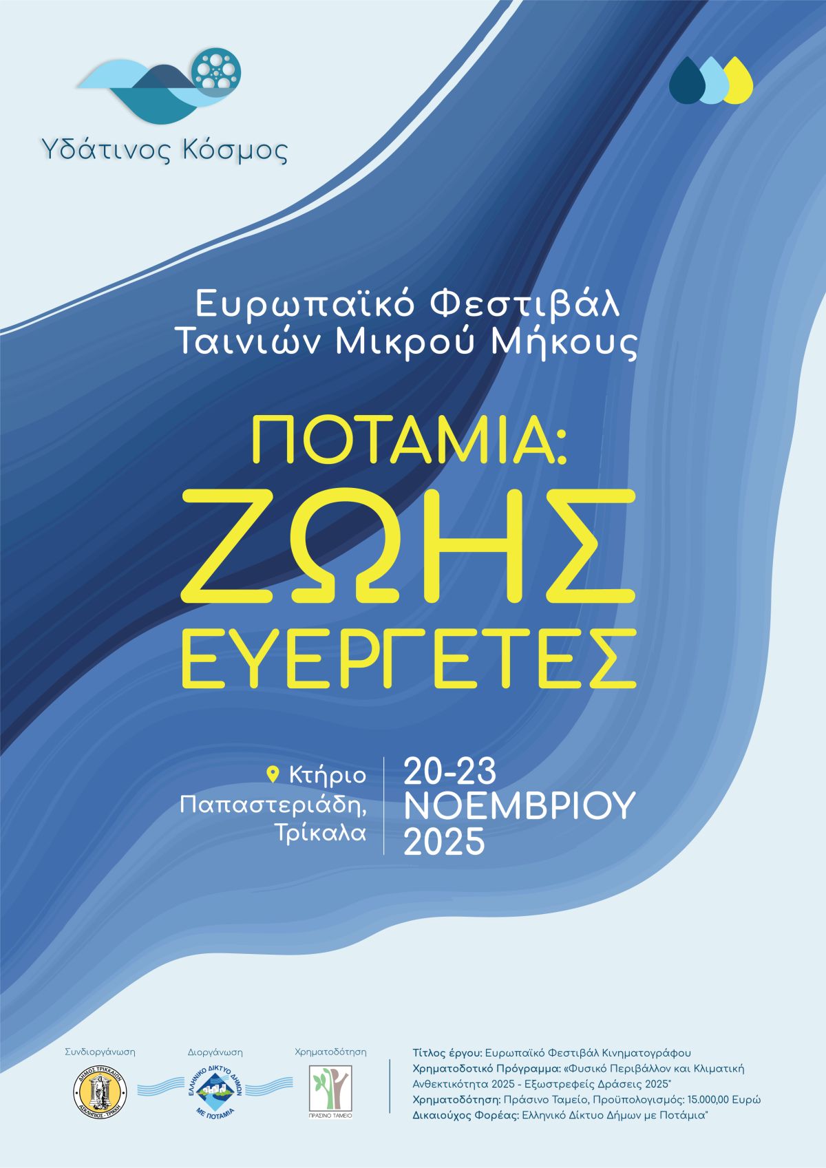 Ευρωπαϊκό Φεστιβάλ Κινηματογράφου Ταινιών Μικρού Μήκους με θέμα: ‘Υδάτινος Κόσμος’, «Ποτάμια: Ζωής Ευεργέτες»