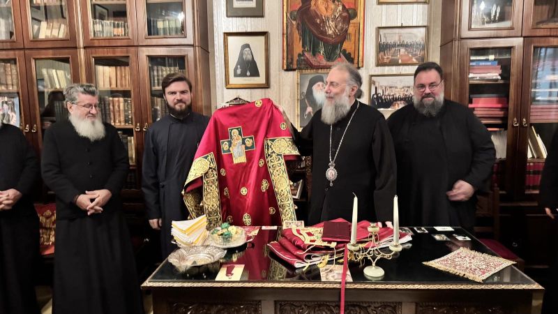 Ο Πρωτοσύγκελλος εκπροσωπώντας το σύνολο των κληρικών της Ιεράς μας Μητροπόλεως αφού προέβαλε την υιική αφοσίωση και τον σεβασμό στο πρόσωπο του Σεπτού μας Ποιμενάρχου, προσέφερε στον Σεβασμιώτατο ως συμβολικό δώρο όλων των ιερέων, Αρχιερατικά άμφια ευχόμενος μακρά και ελπιδοφόρα Αρχιερατική διακονία προς όφελος της Τοπικής Εκκλησίας, του Κλήρου και του Λαού της καθ’ ημάς Ιεράς Μητροπόλεως.