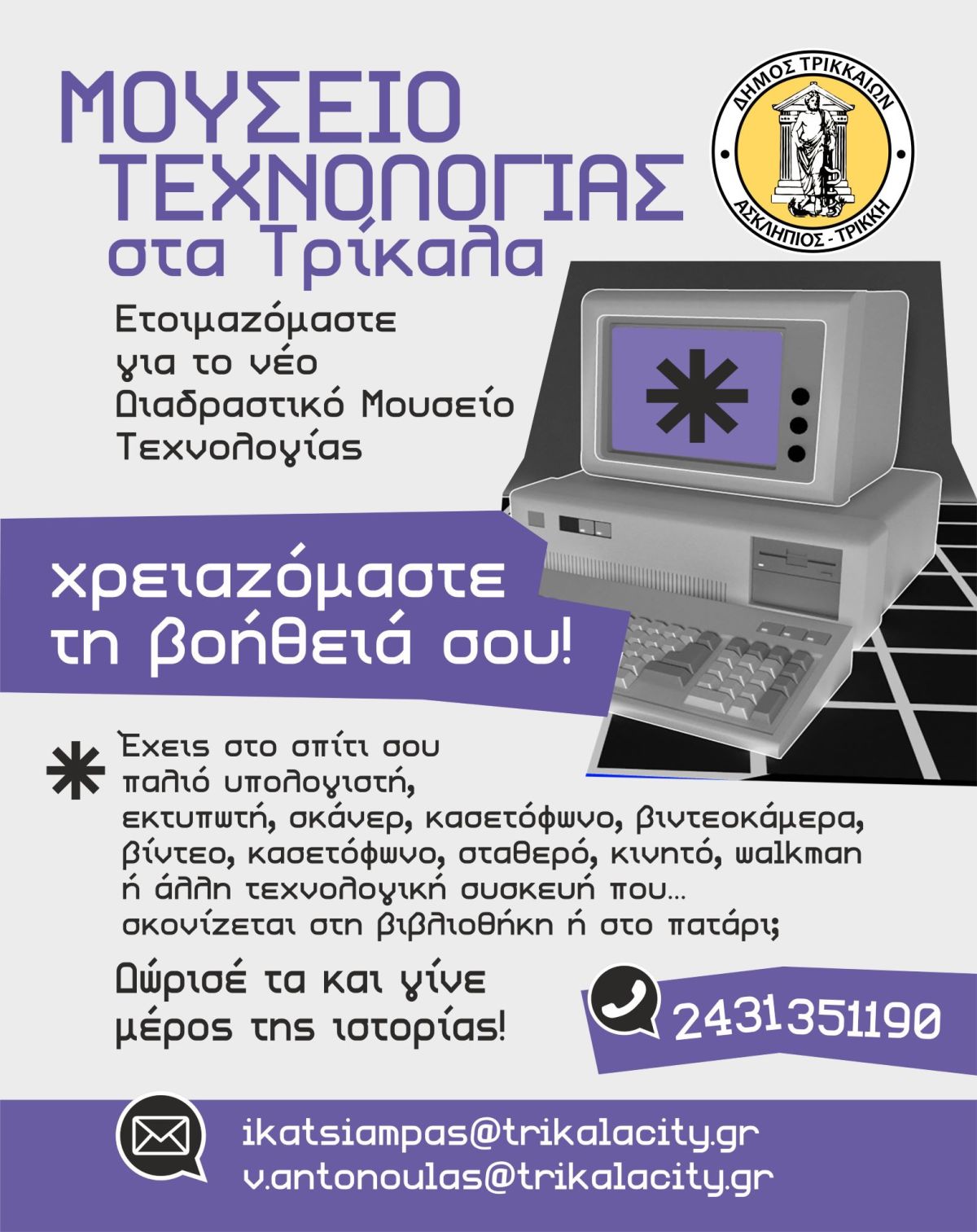 2431351190 ή στα emails ikatsiampas@trikalacity.gr και v.antonoulas@trikalacity.gr.