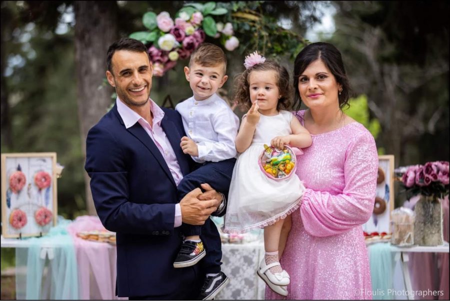 Νονός της μικρής που της χάρισε το υπέροχο όνομα, ήταν ο Τρύφων Βάσκος. Χρώματα, λουλούδια και ένας υπέροχος πολύχρωμος μπουφές με γλυκίσματα και μπομπονιέρες περίμενε τους καλεσμένους.