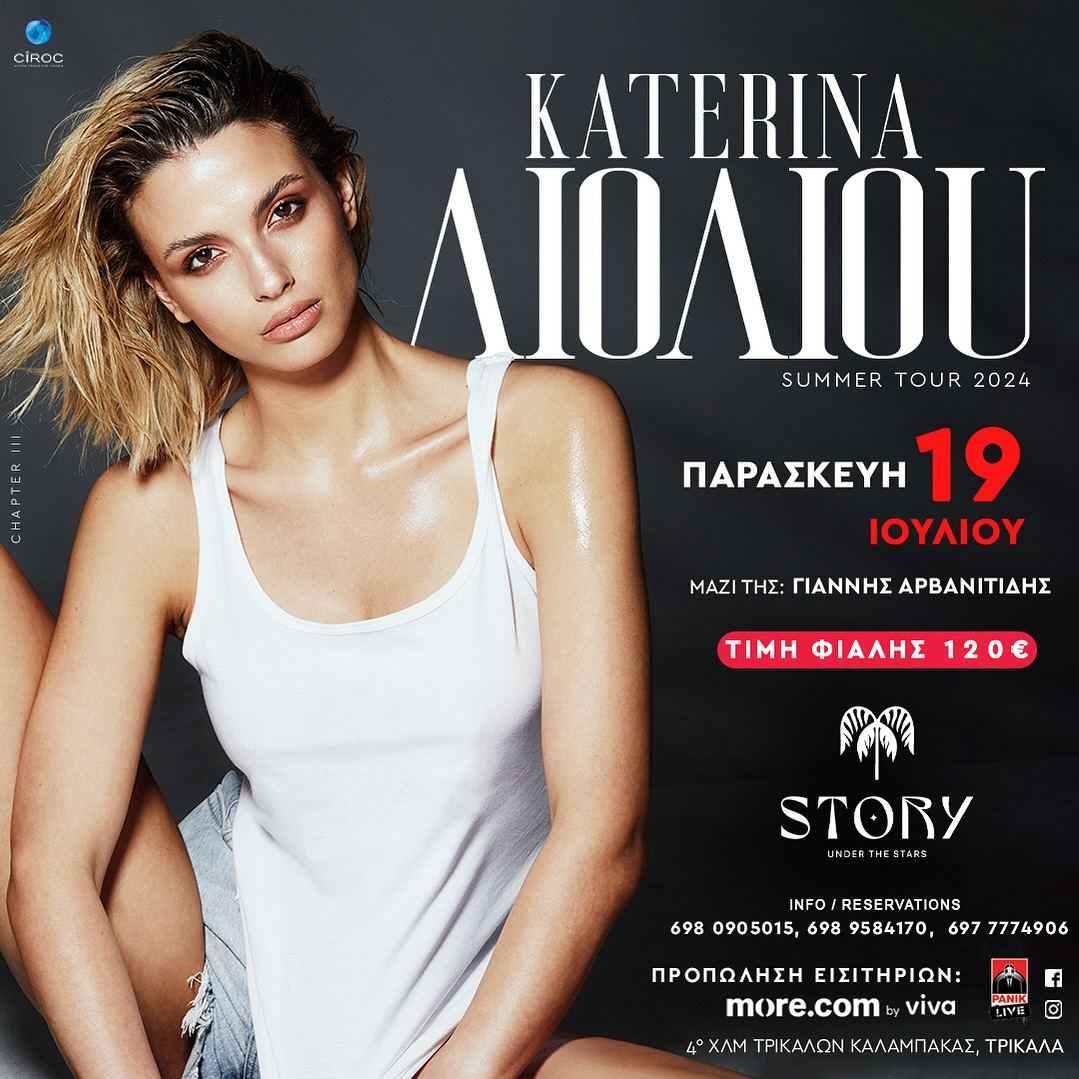 Συνεχόμενα τα sold out της Κατερίνας Λιόλιου αυτό το καλοκαίρι κατά τις περιοδείες της σε όλη την Ελλάδα. Κάτι ανάλογο αναμένεται να γίνει και στα Τρίκαλα όπου η εκρηκτική και ερωτική “γυναίκα της ζωής μας” Κατερίνα Λιόλιου θα εμφανιστεί στο STORY under the stars, την Παρασκευή 19 Ιουλίου σε μία άκρως μαγευτική βραδιά.