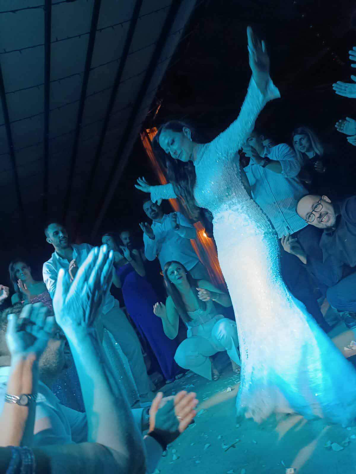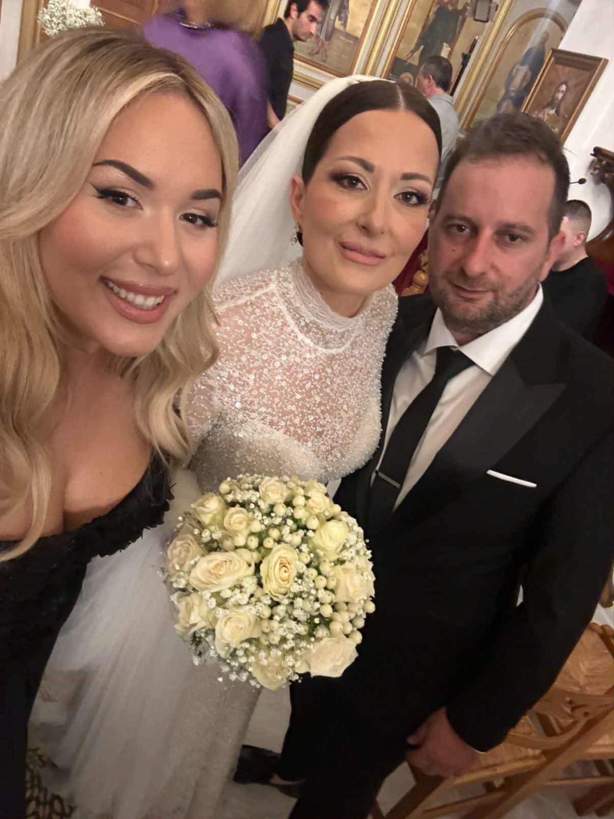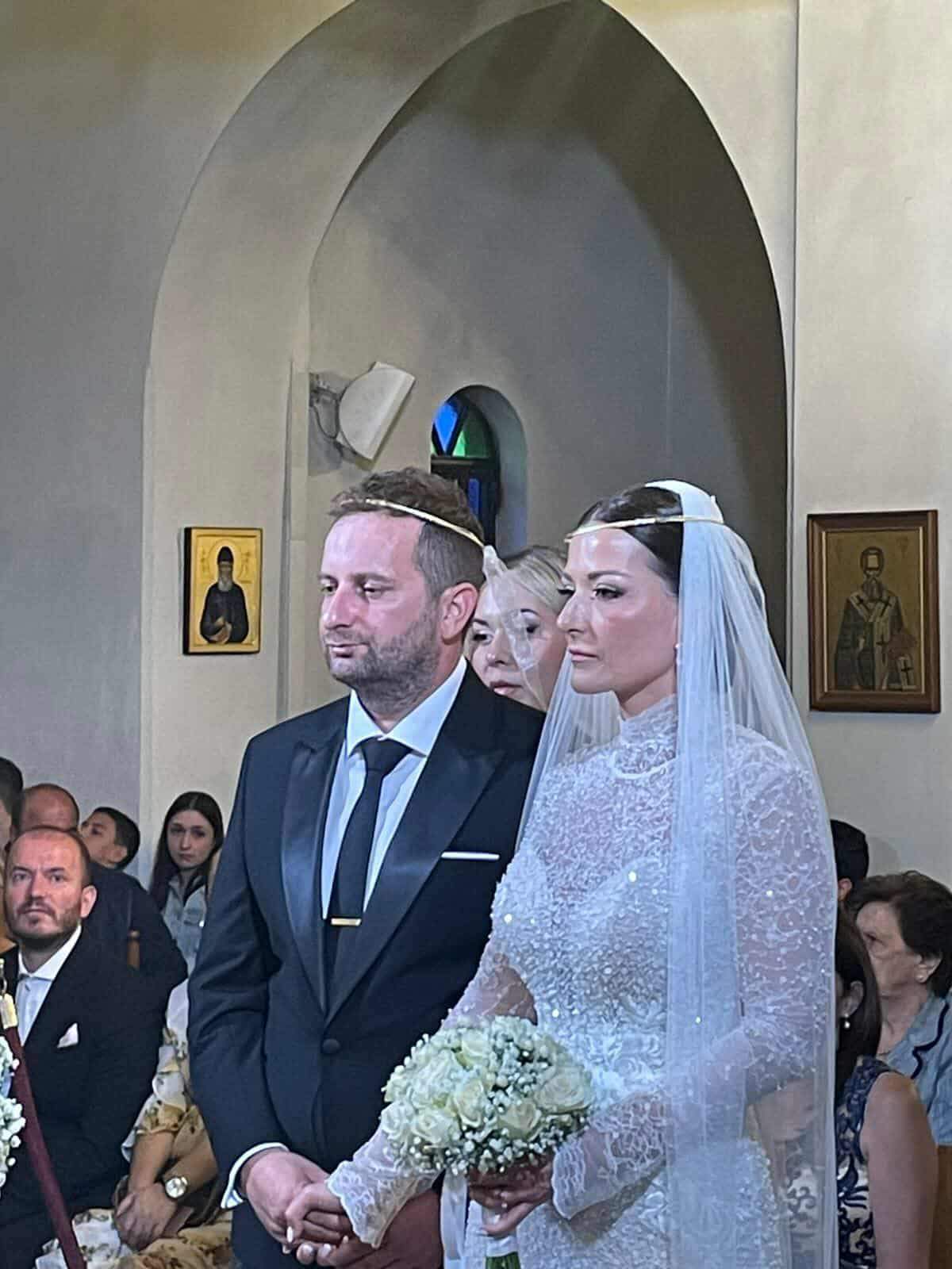 Η λαμπερή νύφη έκλεψε τις εντυπώσεις με την κομψότητα και την ομορφιά της. Το νυφικό της από την Ptimalicia ανέδειξε τη ρομαντική της αύρα, ενώ το εντυπωσιακό χτένισμα των Έλενας & Νικολέτας Κόρδα και το μοναδικό μακιγιάζ από τη Δώρα Κόρδα ολοκλήρωσαν την εικόνα μιας πραγματικής πριγκίπισσας.