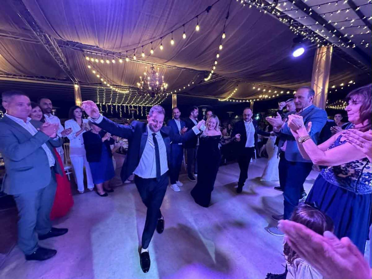Το γαμήλιο πάρτι δόθηκε στο πανέμορφο Κτήμα Αμπέλοι, όπου συγγενείς και φίλοι ευχήθηκαν στο ζευγάρι βίο ανθόσπαρτο. Το γλέντι απογειώθηκε με τον μοναδικό ρυθμό του σπουδαίου ντράμερ Κώστα Μυλωνά, χαρίζοντας μια βραδιά γεμάτη χαρά, συγκίνηση και αλησμόνητες στιγμές.