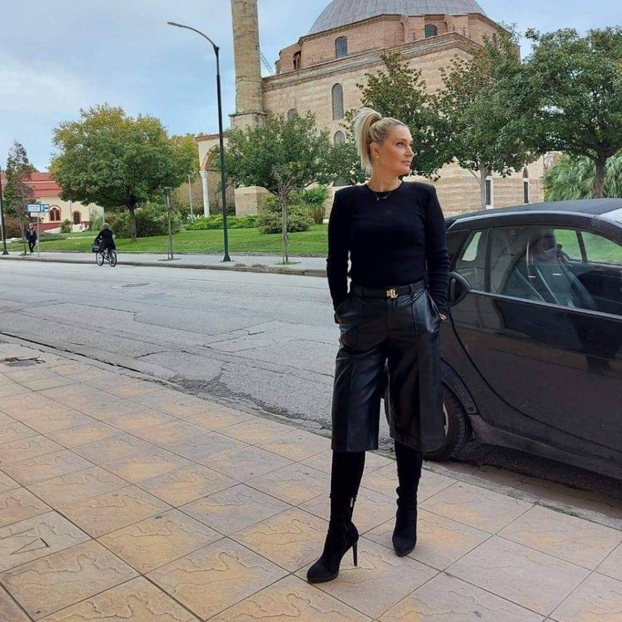 Η nail artist Ηλιάνα Τσίγκα μας κέρδισε με το στυλ της σε ολόμαυρο φόντο με την δερμάτινη παντελόνα να αποτελεί ένα από τα κορυφαία trend του χειμώνα.