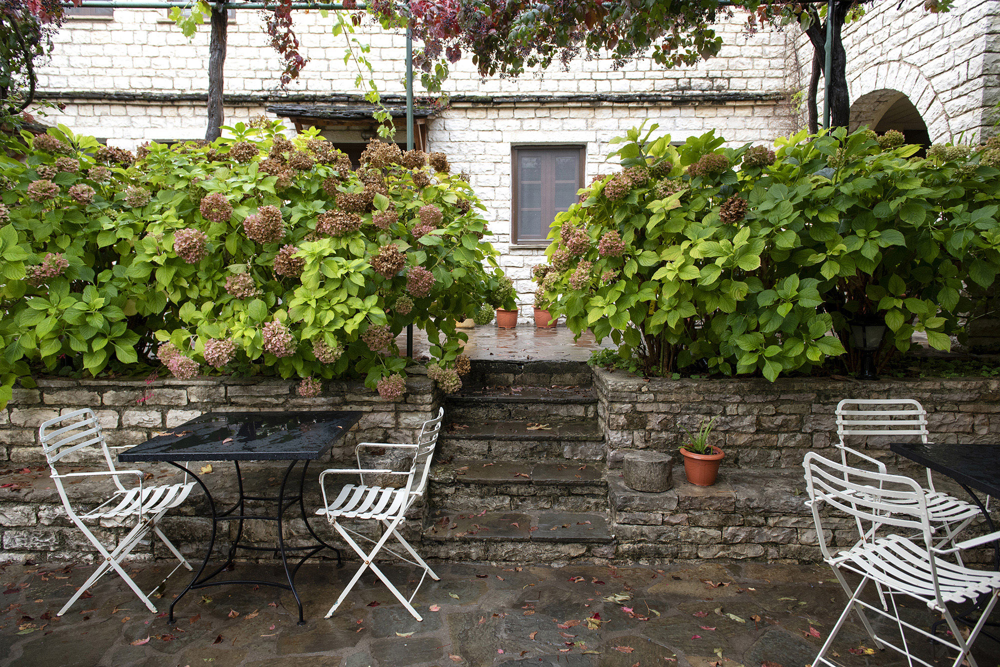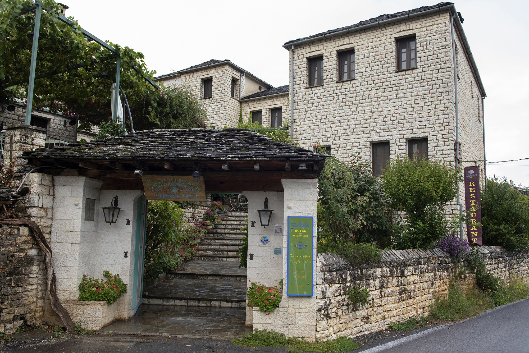 Η αυλή του ξενώνα Ζήσης, στην Αρίστη είναι γεμάτη με όμορφα λουλούδια. Επιστρέφω από μία σύντομη βόλτα στον οικισμό και περνώντας την ξύλινη μπλε πόρτα του ξενώνα, συναντώ την Efrat η οποία μαζί με το σύζυγό της, τον Γιάννη, μου προσφέρουν έναν αχνιστό μυρωδάτο καφέ.