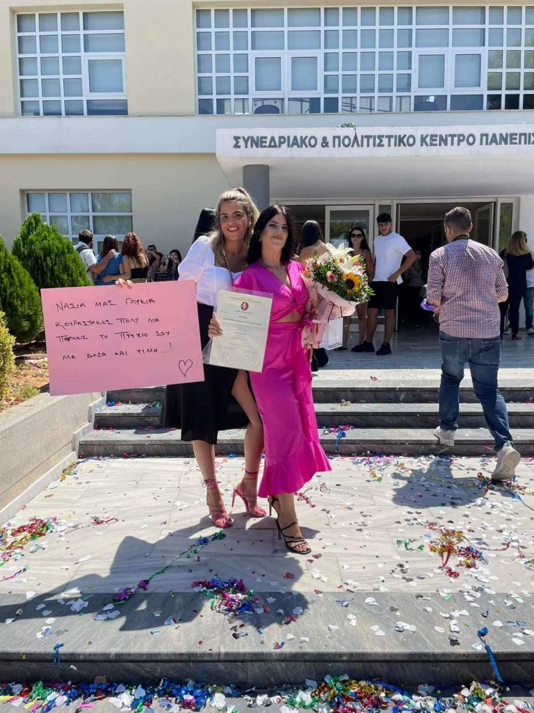 Η Νάσια Μοσκόφογλου, πτυχιούχος πλέον σε μια συγκινητική τελετή αποφοίτησης, που παραβρέθηκαν οι γονείς και φίλοι γεμάτη χαρά για την νέα επιστήμονα. Η Νάσια είναι κόρη του γνωστού ζευγαριού της λαϊκής Αγοράς, του Μπάμπη Μοσκοφογλου και της Μαρίας Βλάχου και πήρε το πτυχίο Νοσηλευτικής από το πανεπιστήμιο Πατρών.