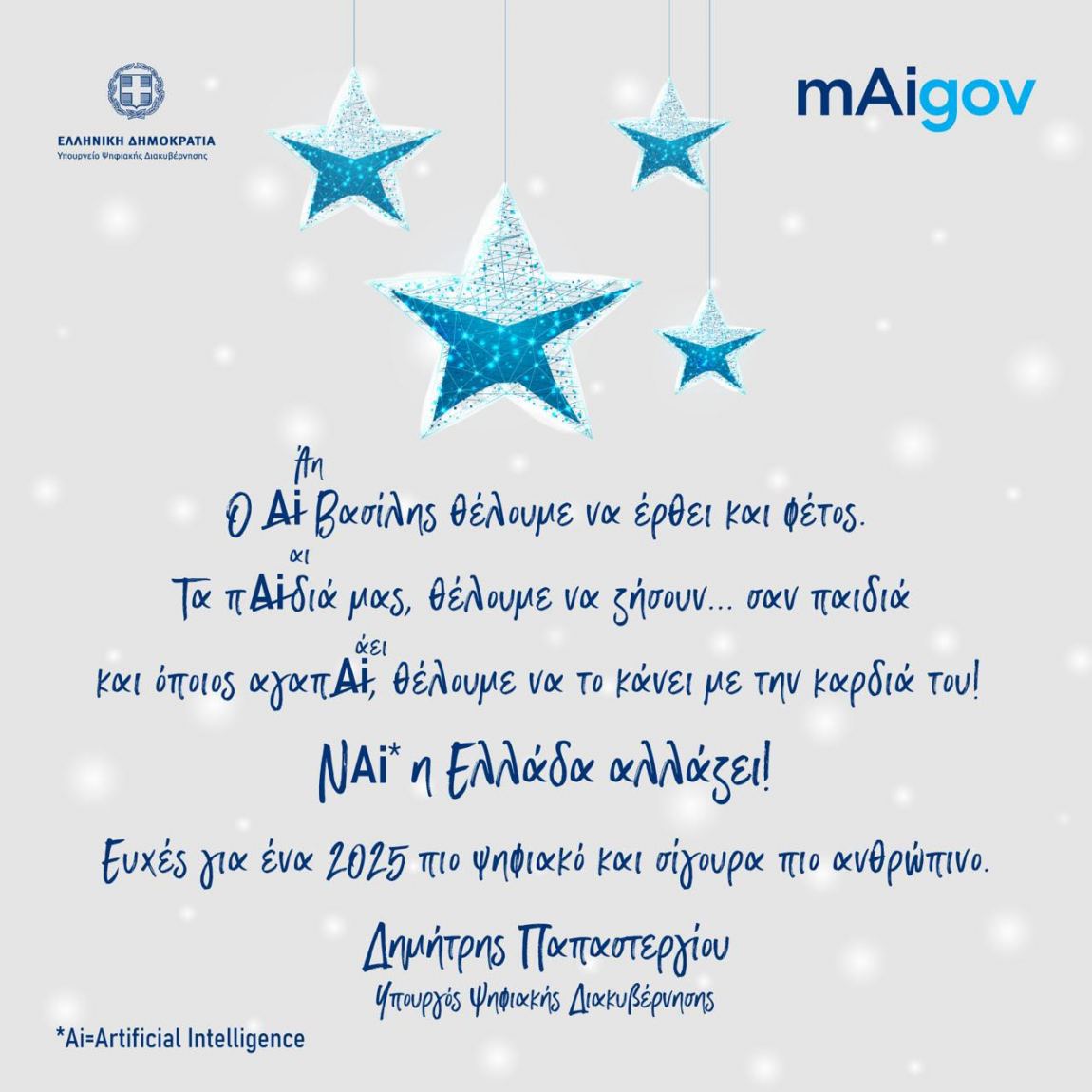 Η ”ψηφιακή” ευχή για τις γιορτές του Υπουργού Δ.Παπαστεργίου