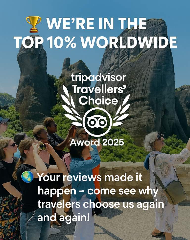 Η Meteora Thrones – Travel Center κερδίζει για 5η συνεχή χρονιά το TripAdvisor Travellers& Choice Award 2025