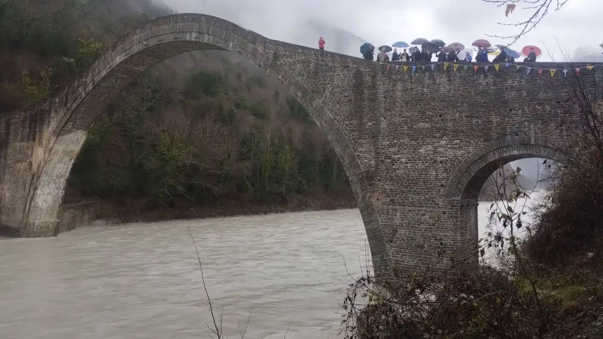 Η τελετή του Αγιασμού των Υδάτων συγκέντρωσε πλήθος πιστών από την ευρύτερη περιοχή των Τζουμέρκων, οι οποίοι βρέθηκαν στο σημείο για να τιμήσουν τη μεγάλη γιορτή της Ορθοδοξίας σε ένα από τα πιο εμβληματικά μνημεία της Ηπείρου.