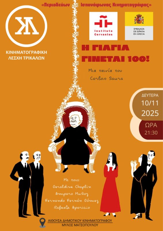 Η Κινηματογραφική Λέσχη Τρικάλων εγκαινιάζει μια νέα σειρά επιλεγμένων ταινιών, με την ισπανική μαύρη κωμωδία “Η γιαγιά γίνεται 100” του Carlos Saura.