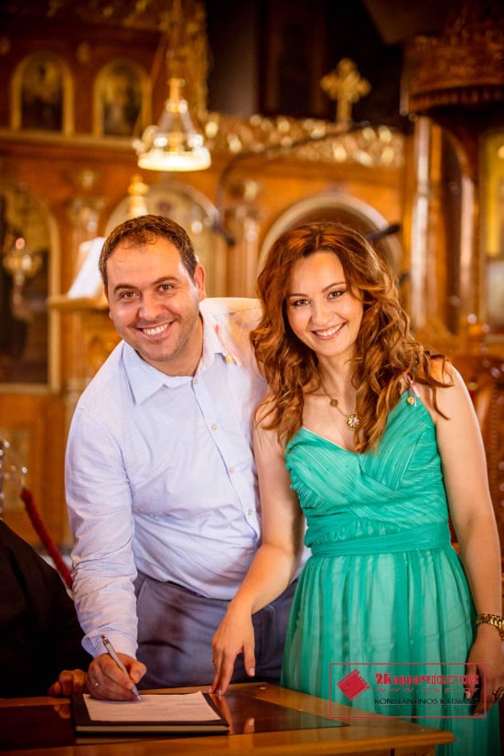 Κουμπάροι του ζευγαριού ήταν η Ευαγγελία και ο Γιώργος Σκούφιας , ενώ η Ευαγγελία, αδερφή της Χρύσας Ξάνθη ‘χάρισε’ το όνομα Κωνσταντινιά στη μικρή προς τιμήν της μητέρας τους. Το μυστήριο τελέστηκε χθες στον Ιερό Ναό Μεταμόρφωσης του Σωτήρος, στη Σωτήρα Τρικάλων, στη 13:00, το μεσημέρι.