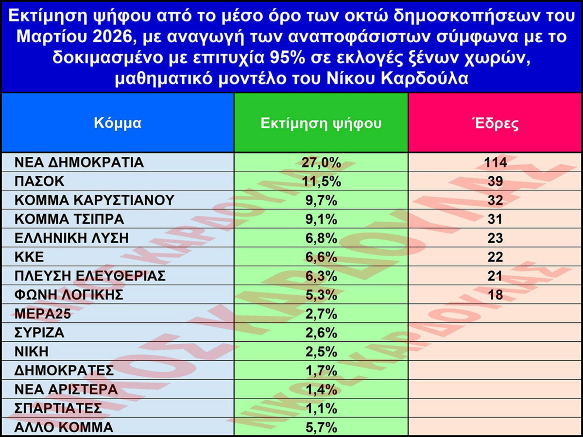 δοκιμασμένο με επιτυχία 95% σε εκλογές ξένων χωρών, μαθηματικό μοντέλο.