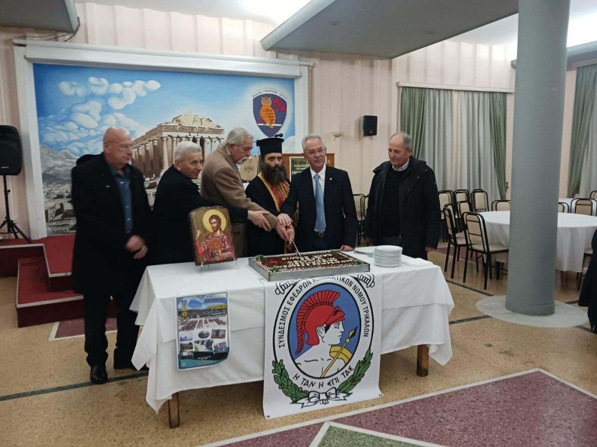Σε ιδιαίτερα θερμό και συναδελφικό κλίμα πραγματοποιήθηκε η εκδήλωση κοπής της πρωτοχρονιάτικης πίτας των Εφέδρων Αξιωματικών Τρικάλων στη Λέσχη Αξιωματικών Φρουράς (ΛΑΦ) Τρικάλων.