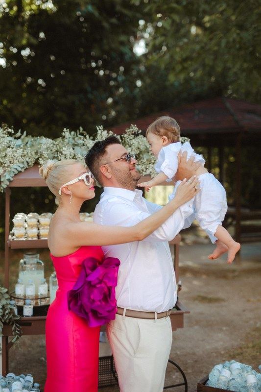 Η δεξίωση της βάπτισης έγινε στο Κτήμα Άμπελοι, όπου οι γονείς περιχαρείς δέχτηκαν τις ευχές φίλων και συγγενών.