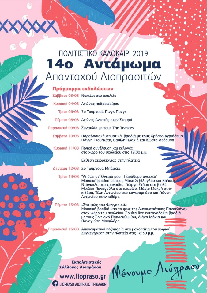 Μένουμε Λιόπρασο και στις πολιτιστικές εκδηλώσεις για το 14ο Αντάμωμα Λιοπρασιτών.