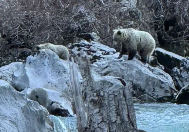Μια αρκούδα (Ursus arctos) με το μικρό της εντοπίστηκε να ψαρεύει στα νερά του ποταμού Αώου, σε σημείο όπου βρίσκεται μία από τις παράνομες τσιμεντώσεις της κοίτης του ποταμού, κατά τον χειμώνα του 2025. Η παρουσία του εντυπωσιακού αυτού θηλαστικού στην περιοχή αναδεικνύει την αξία του οικοσυστήματος αλλά και τις πιέσεις που δέχεται από ανθρώπινες παρεμβάσεις.Τις σχετικές φωτογραφίες ανάρτησε στο Facebook η ομάδα Πρωτοβουλία για την Προστασία και Ανάδειξη της χαράδρας του Αώου.