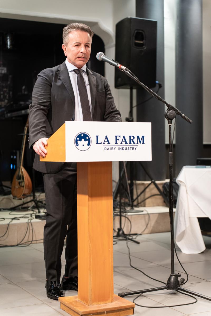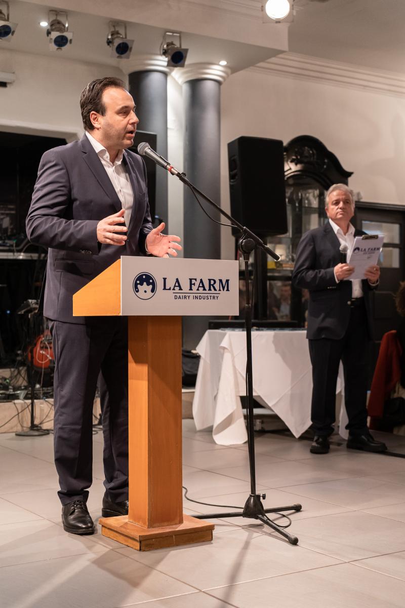 Στη συνέχεια ο ιδιοκτήτης της βιομηχανίας LA FARM Βαγγέλης Πλεξίδας ευχαρίστησε όλους τους παρευρισκόμενους για την τιμή να παραστούν στην εκδήλωση, καθώς και για την εμπιστοσύνη που δείχνουν οι καταναλωτές στην εταιρεία, εδώ και πολλά χρόνια. Τόνισε επίσης, πως τα δύο χρόνια που διήρκησε η πανδημία, η εταιρεία κατάφερε να σταθεί στα πόδια της, ενώ έκλεισε την σύντομη ομιλία του με μια φράση του Νίτσε «Ότι δεν σε σκοτώνει σε κάνει πιο δυνατό», για να εισπράξει το θερμό χειροκρότημα του κοινού.